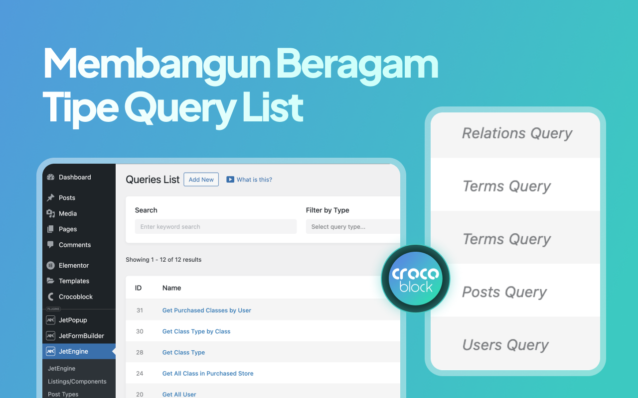 Fokus utama kelas ini bukan sekadar tampilan visual, tetapi arsitektur sistem di baliknya. Kamu akan belajar mengubah layout Elementor yang statis menjadi sistem dinamis tingkat lanjut menggunakan Crocoblock. Mulai dari membangun Custom Post Type (CPT), Custom Content Type (CCT), relasi data antar konten, hingga mengelola input pengguna melalui JetFormBuilder, seluruh proses dirancang agar kamu benar-benar memahami alur kerja Crocoblock dari struktur data hingga tampilan.