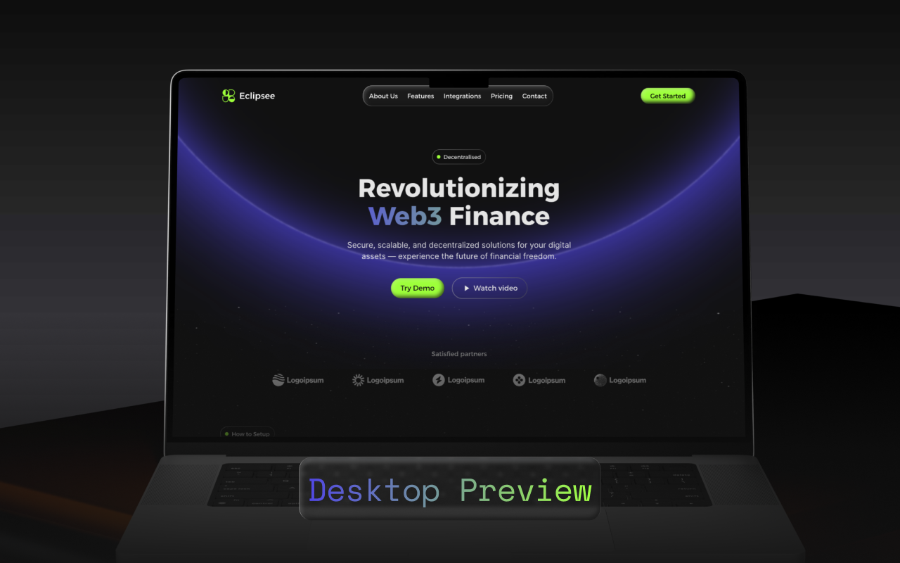 Web3 is reshaping the digital universe β but great innovation deserves great design. Introducing Eclipsee, a premium UI kit built for crafting stunning next-generation Web3 landing pages. Inspired by cosmic motion and decentralized technology, Eclipsee brings together futuristic aesthetics and intuitive usability to help your brand shine in the blockchain space.
