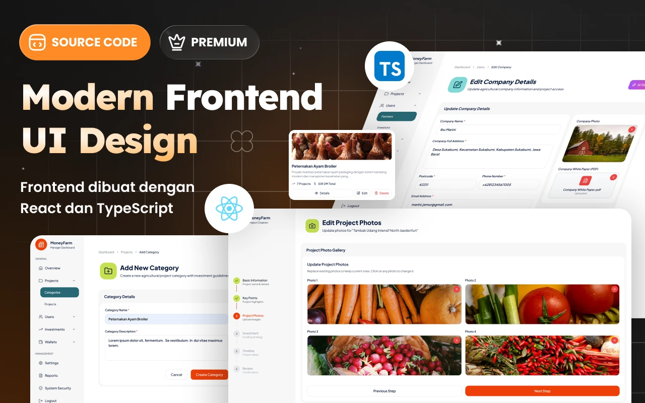 Source code ini adalah paket all-in-one untuk membangun platform **investasi peternakan (livestock investment marketplace)** dengan arsitektur modern berbasis **Laravel 12** untuk backend dan **React + TypeScript** untuk frontend. Sistem ini dirancang sebagai produk digital siap pakai yang dapat dipelajari, dikustom, atau dijual ke developer, agency, maupun startup yang ingin membuat platform investasi berbasis proyek secara cepat dan profesional.
