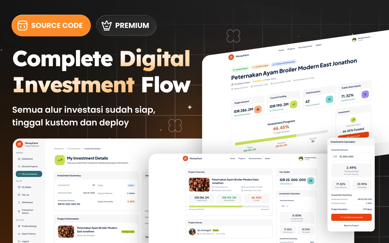 Agensi dapat memakai codebase ini sebagai “starter kit” untuk membangun platform investasi custom versi klien (misalnya investasi ternak, pertanian, atau crowdfunding bisnis).
