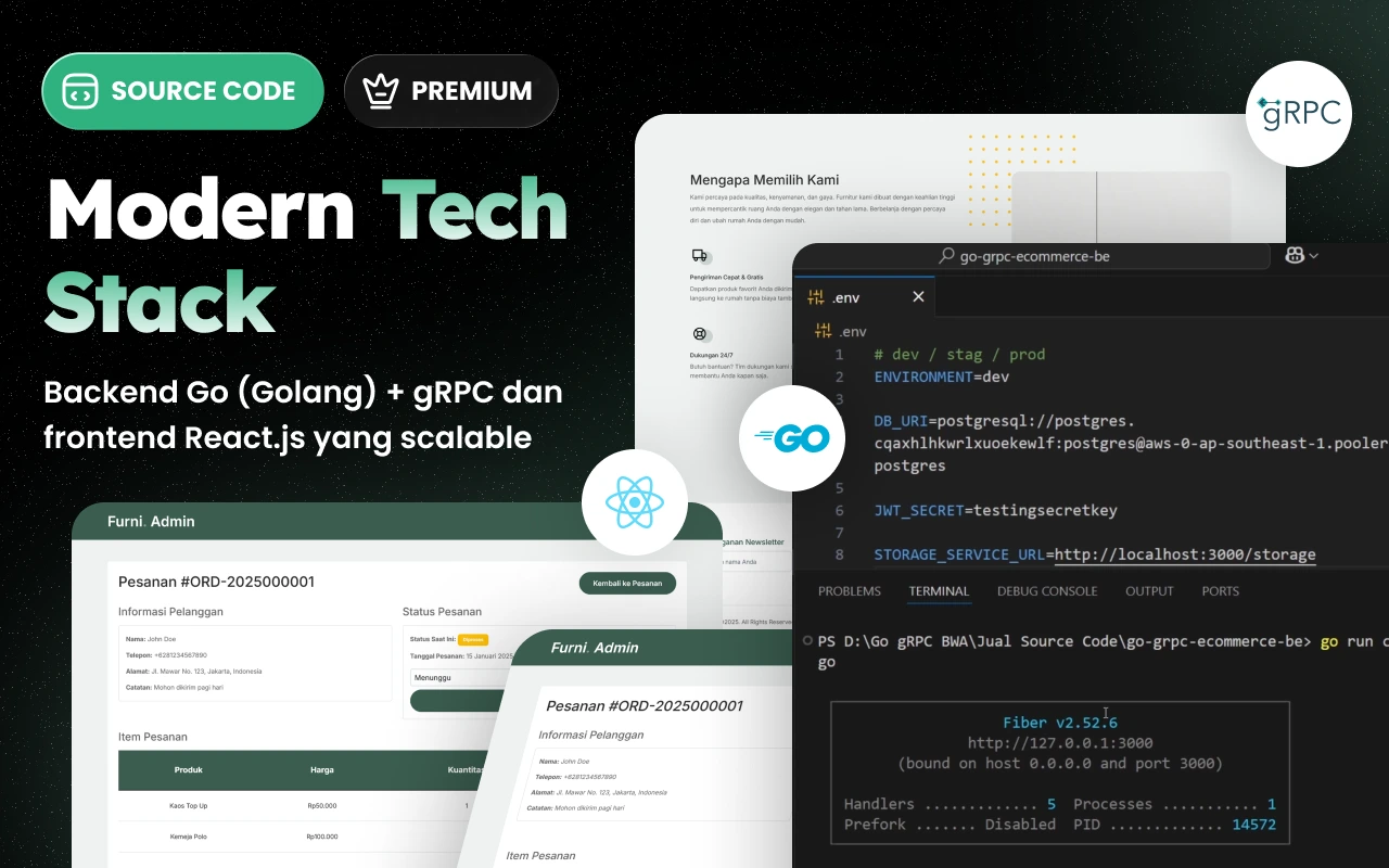 Source Code Golang gRPC & React JS: Web Ecommerce 2025
