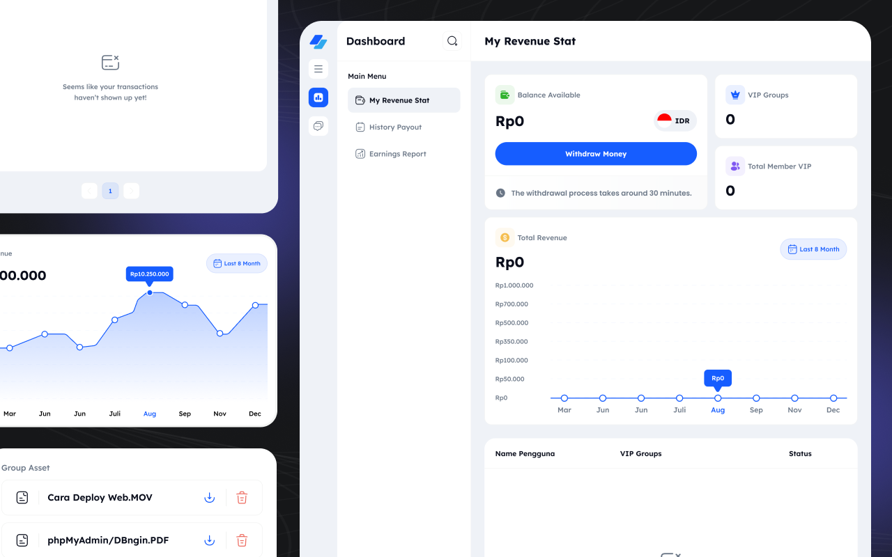 Struktur HTML dibuat bersih dan mudah dipahami, serta menggunakan Tailwind CSS agar proses kustomisasi layout, warna, dan komponen bisa dilakukan dengan cepat. Template ini berfokus pada sisi frontend (tampilan) dan belum dilengkapi dengan sistem backend, database, maupun real-time messaging.