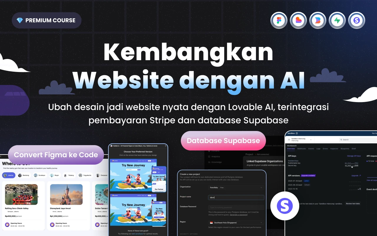 Kelas UI/UX + Vibe Coding: Bikin Website Pemesanan Tiket Experience ini dirancang khusus untuk kamu yang ingin belajar dari nol sampai jadi — mulai dari desain antarmuka yang menarik, pengembangan tampilan yang interaktif, hingga integrasi sistem pembayaran dan database layaknya website profesional.