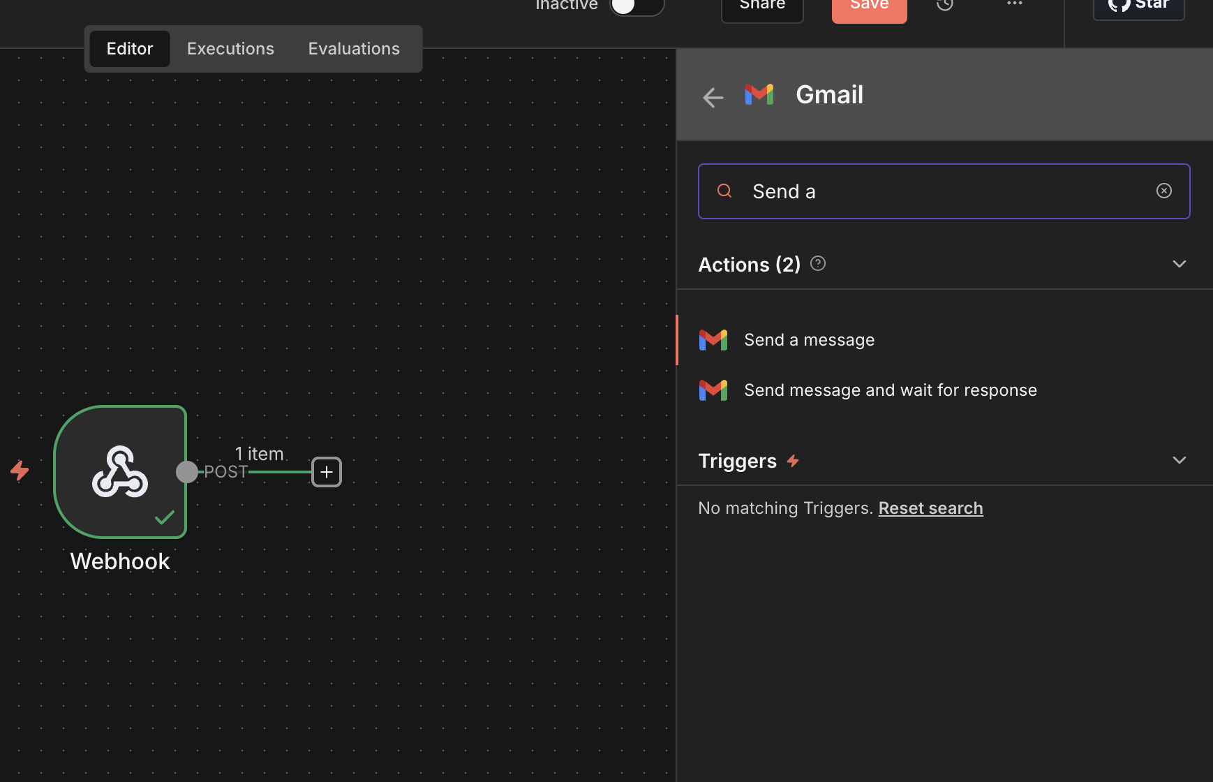 - Di n8n, klik tanda (+) setelah node Webhook.