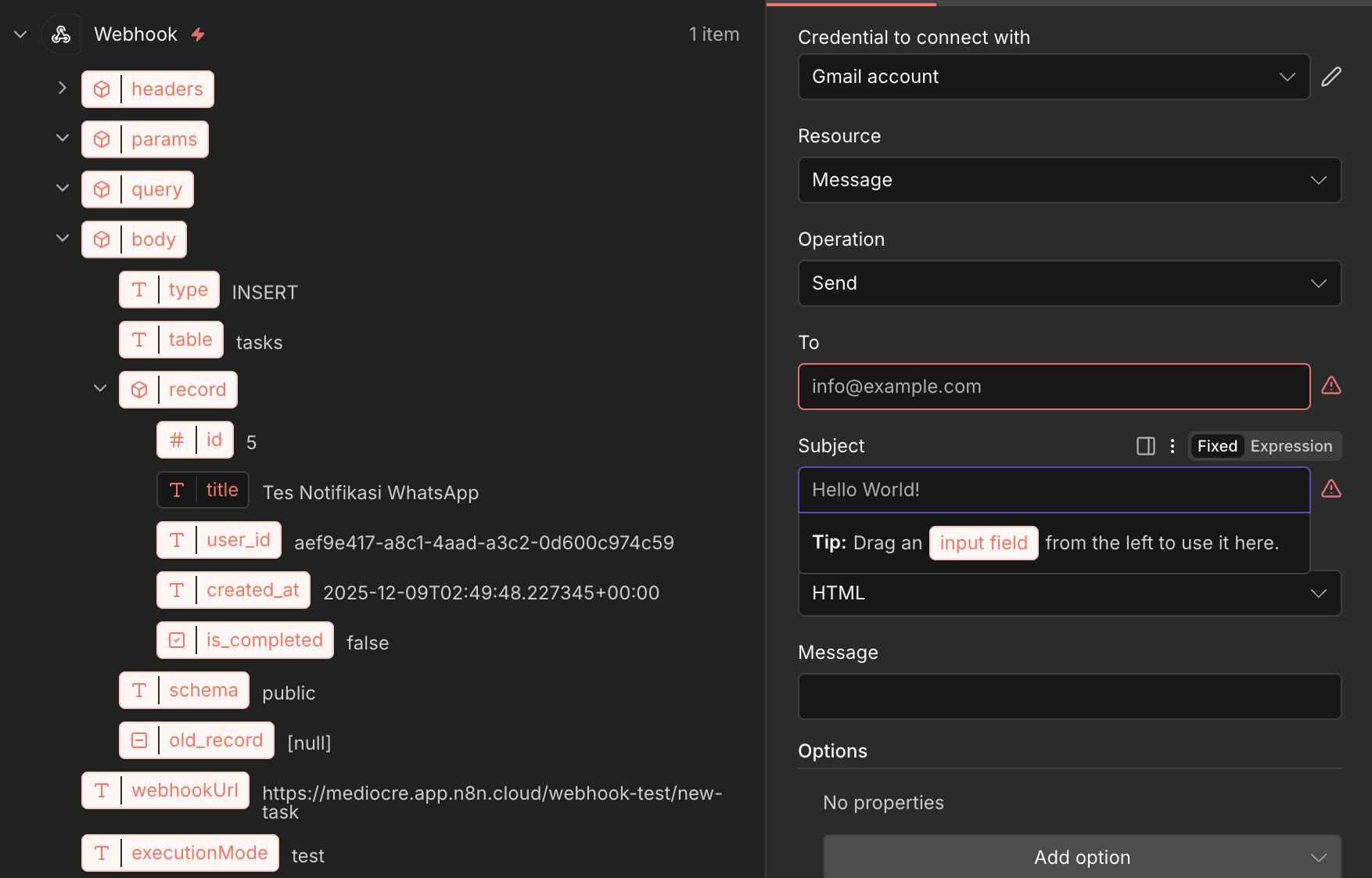 Subject: Tugas Baru: {{ $json.body.record.title }} (Drag & Drop dari data webhook).image.png