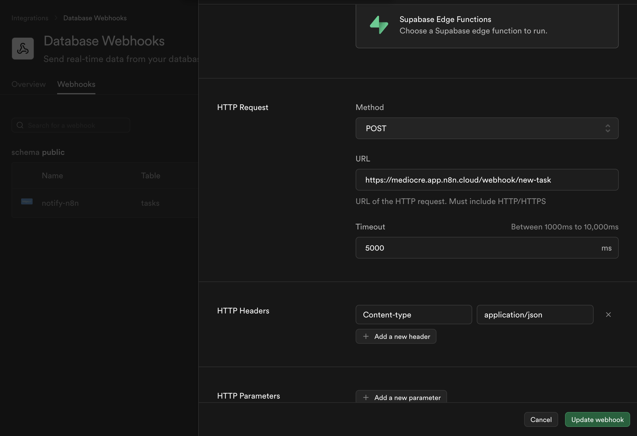 Kita akan menyuruh Supabase melapor ke n8n setiap kali ada tugas baru.