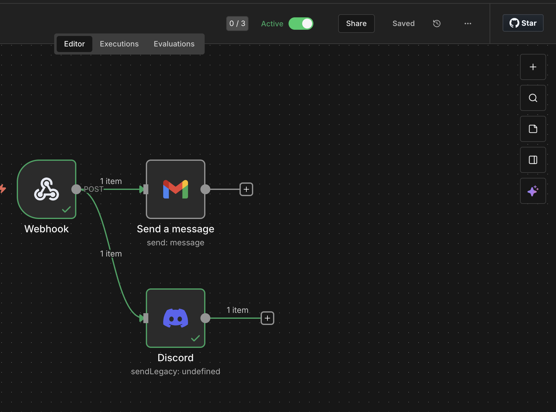 - Di n8n, klik tombol Active (pojok kanan atas) jadi Hijau.