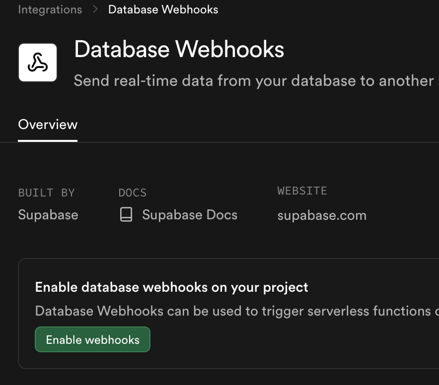 Kita tidak perlu mengubah kode di Lovable. Kita akan menggunakan fitur canggih Supabase bernama Database Webhooks.