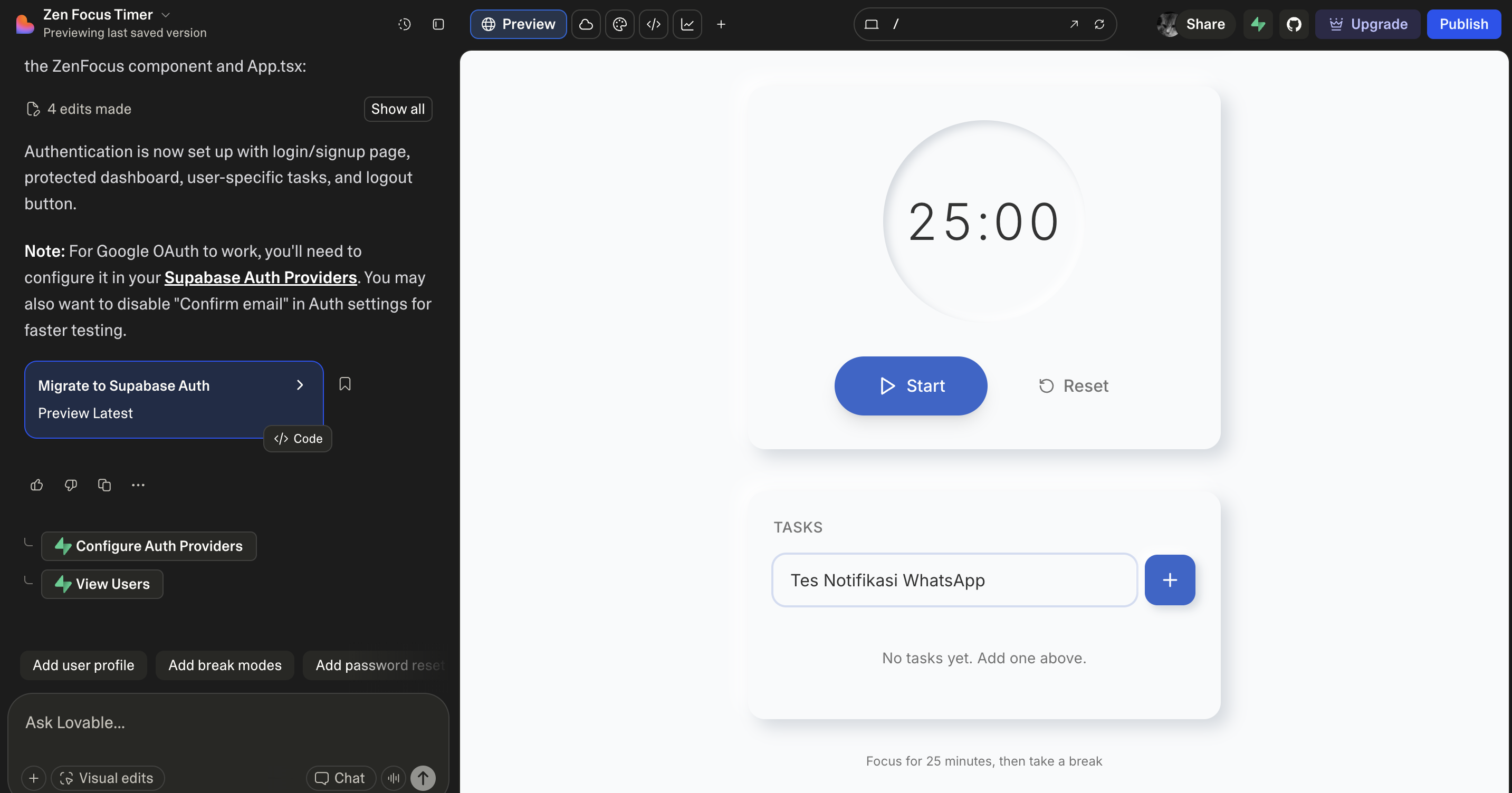 - Buka aplikasi ZenFocus Anda (di browser/Lovable).