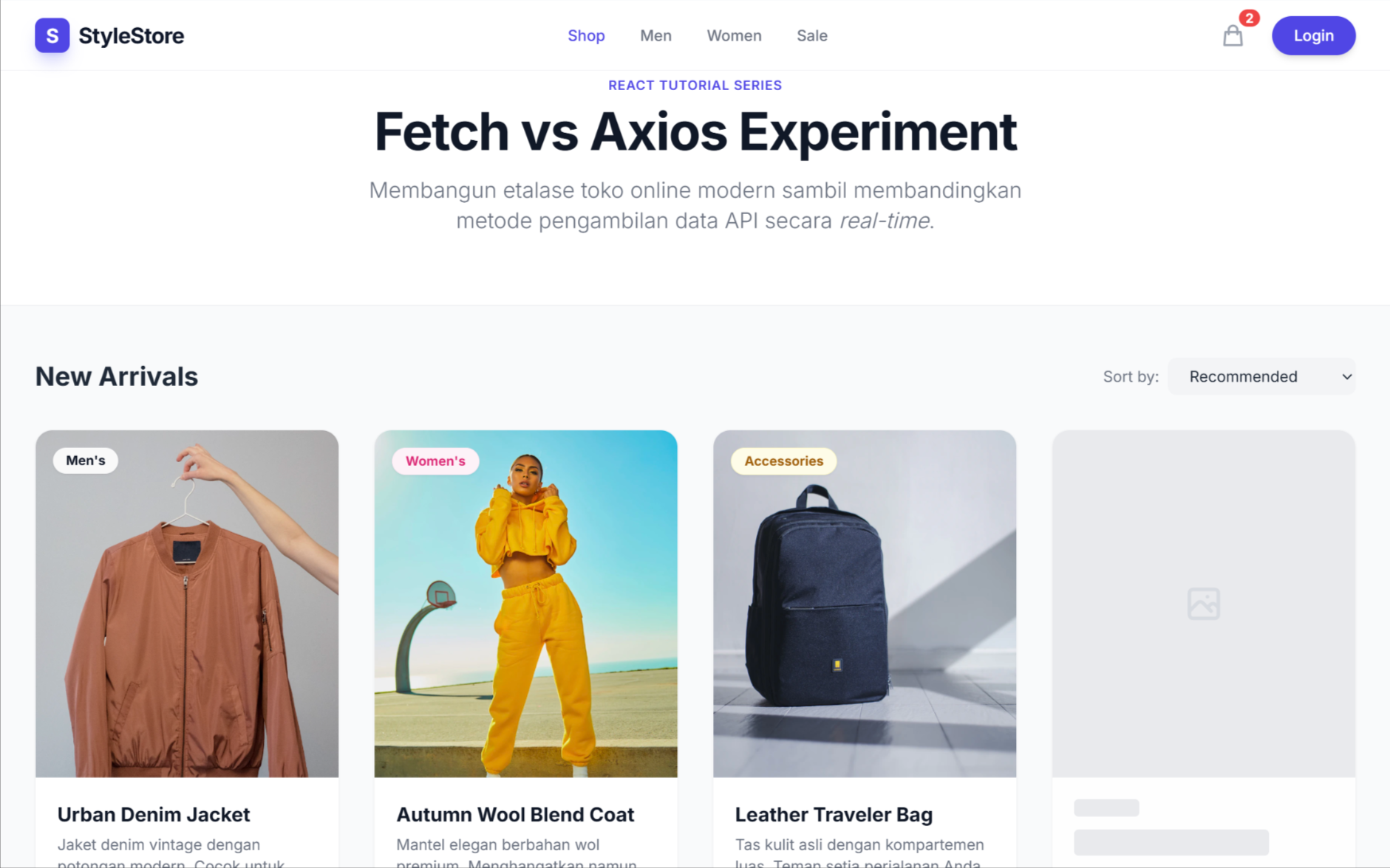 Biar nggak cuma ngobrol di level teori, di artikel ini kita bakal praktik langsung lewat project sederhana: Toko Baju Online. Kita mulai dari setup React dari nol, ambil data produk dari API, lalu bandingin langsung pengalaman pakai Fetch dan Axios. Santai aja, anggap kita lagi ngoding bareng sambil ngopi.