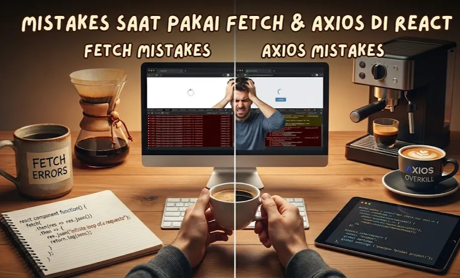Kalau kamu baru masuk ke dunia React, cepat atau lambat pasti ketemu satu pertanyaan yang kelihatannya sepele tapi sering bikin mikir: pakai Fetch atau Axios ya buat ambil data API? Di tutorial-tutorial awal, dua-duanya sering muncul. Sama-sama bisa jalan, sama-sama kelihatan simpel. Tapi begitu masuk ke project yang agak serius, baru kerasa bedanya.