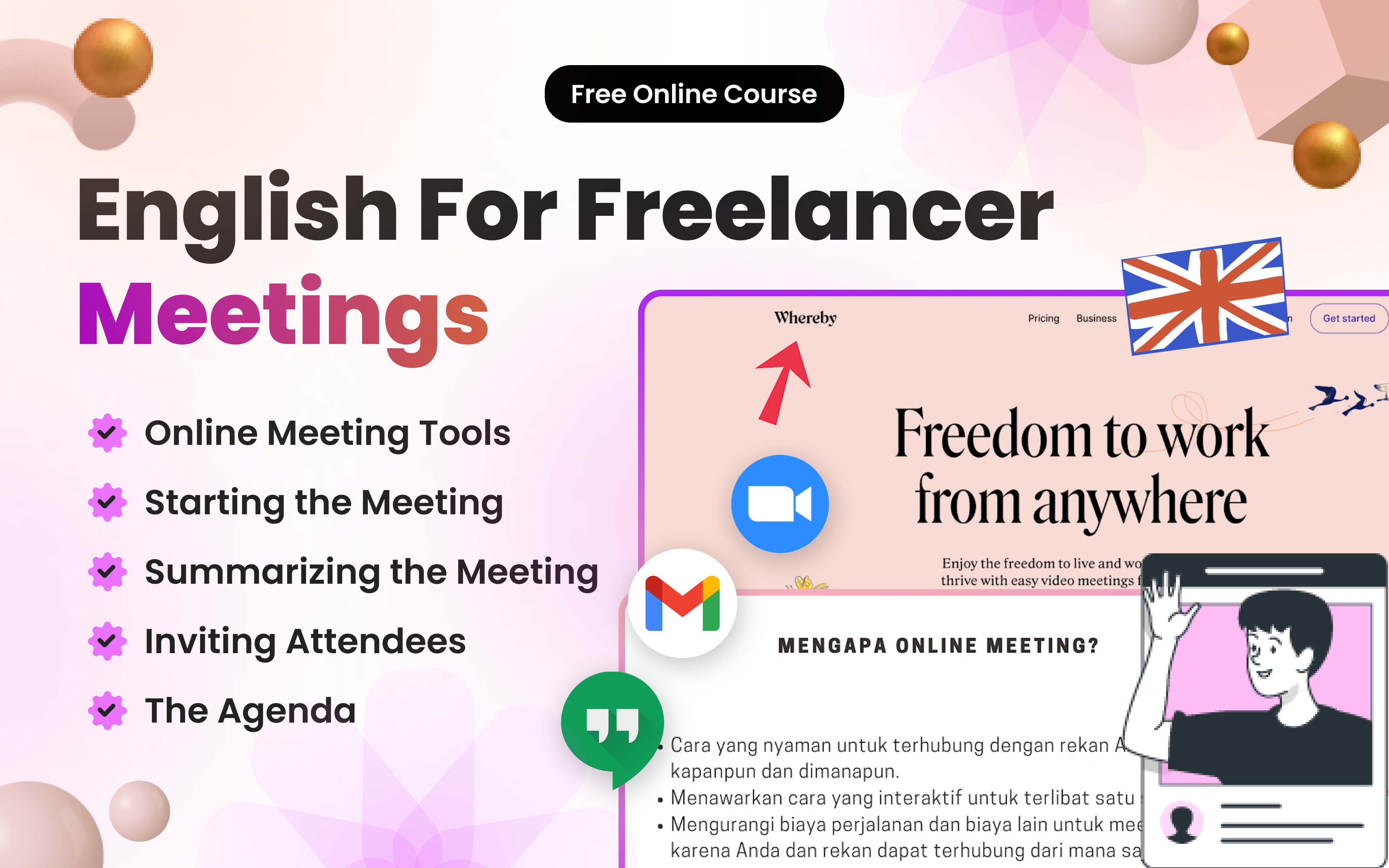 BuildWithAngga punya kelas khusus buat ini: English for Freelancer: Meetings. Kelas ini ngajarin kamu bahasa inggris praktis yang langsung bisa kamu pake saat meeting dengan klien. Bukan grammar rumit atau vocabulary akademik, tapi real conversation yang natural dan berguna. Dalam 2 hingga 3 minggu, kamu udah bisa percaya diri ngobrol bahasa inggris dengan klien.