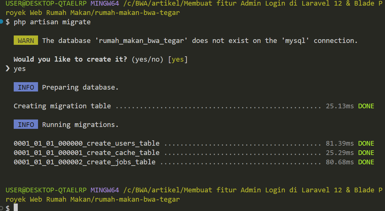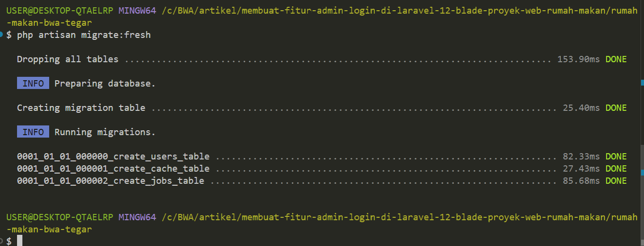 Selanjutnya jalankan migrasi: