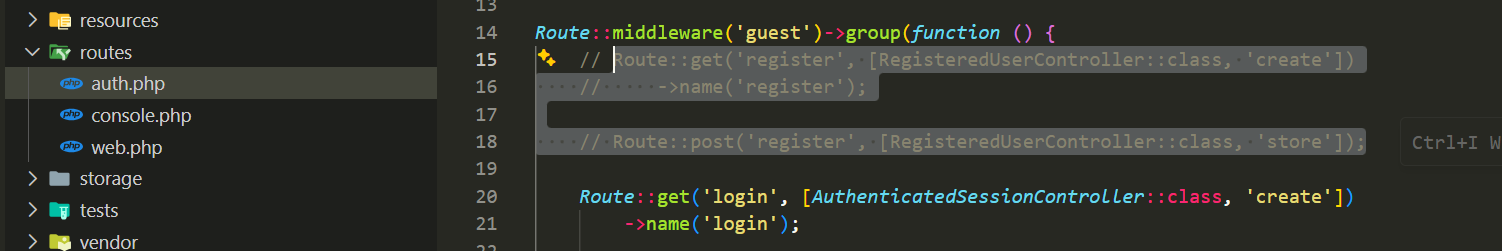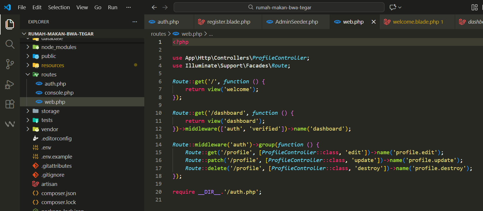Untuk memastikannya, silakan buka file routes/web.php dan perhatikan bagaimana Laravel membungkus rute tersebut agar tetap aman dari akses ilegal.
