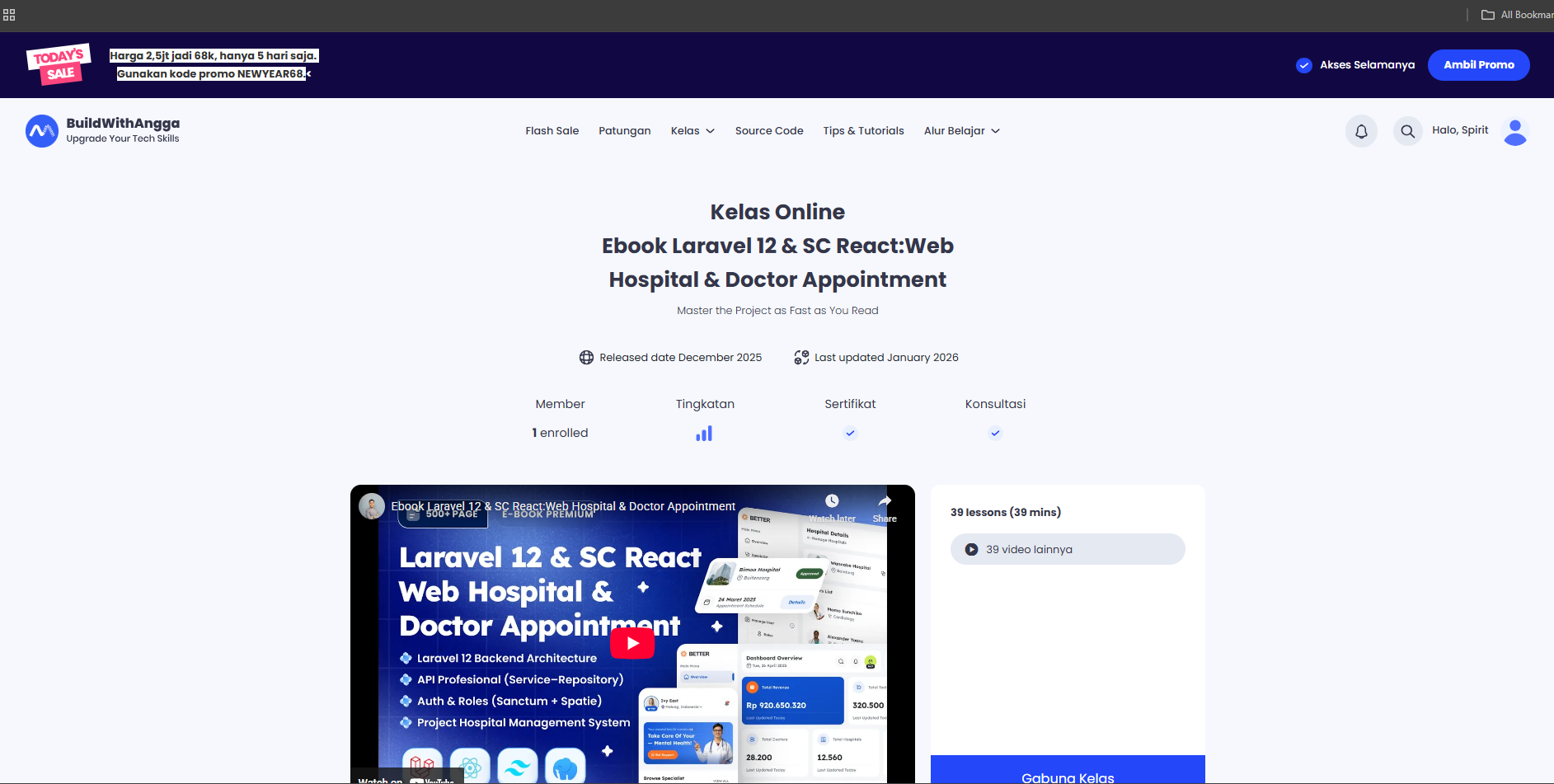 Kami sangat merekomendasikan kamu untuk segera bergabung dalam kelas "Ebook Laravel 12 & SC React: Web Hospital & Doctor Appointment", di mana kamu akan belajar Laravel 12 secara mendalam dengan praktik langsung membangun backend API profesional menggunakan service-repository pattern, Sanctum middleware, hingga Spatie roles & permissions.