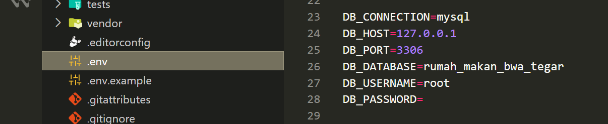 Buka file .env di proyek kamu, lalu sesuaikan bagian ini saja: