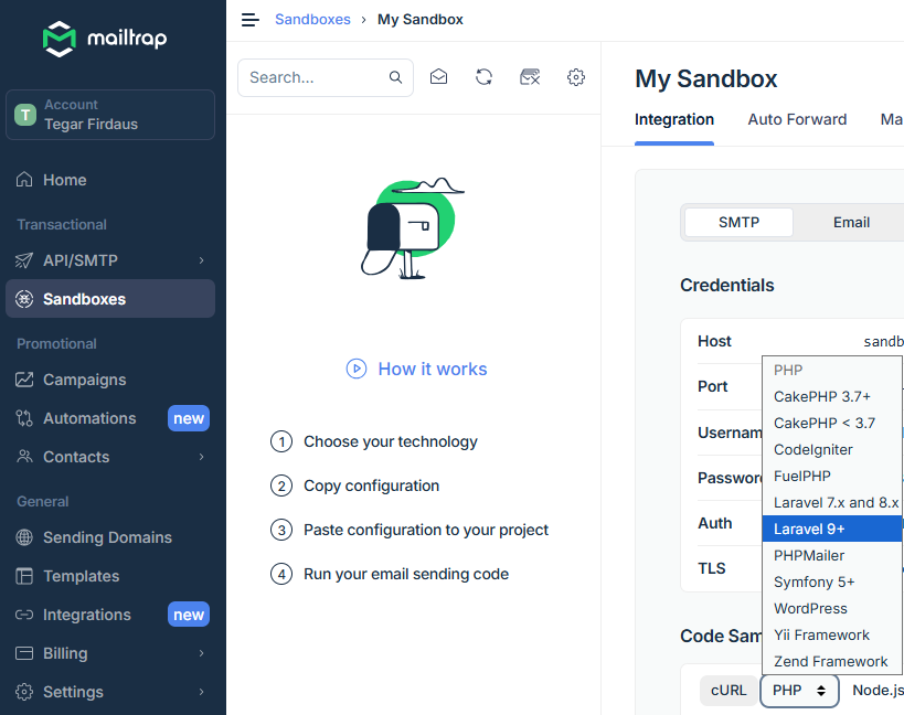 Caranya dengan kembali ke Mailtrap lagi dan nanti kalian akan melihat ini.