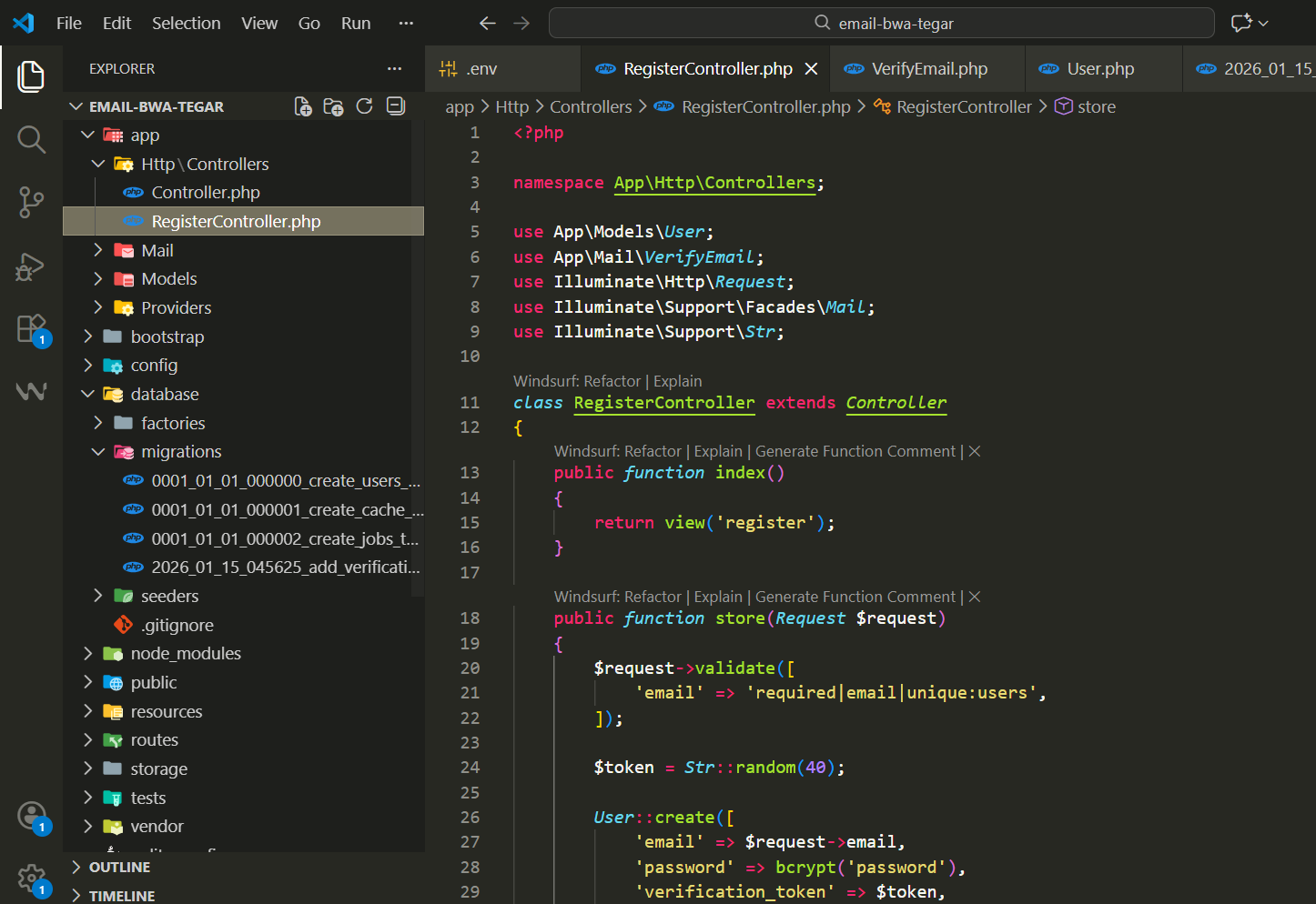 Isi RegisterController.php