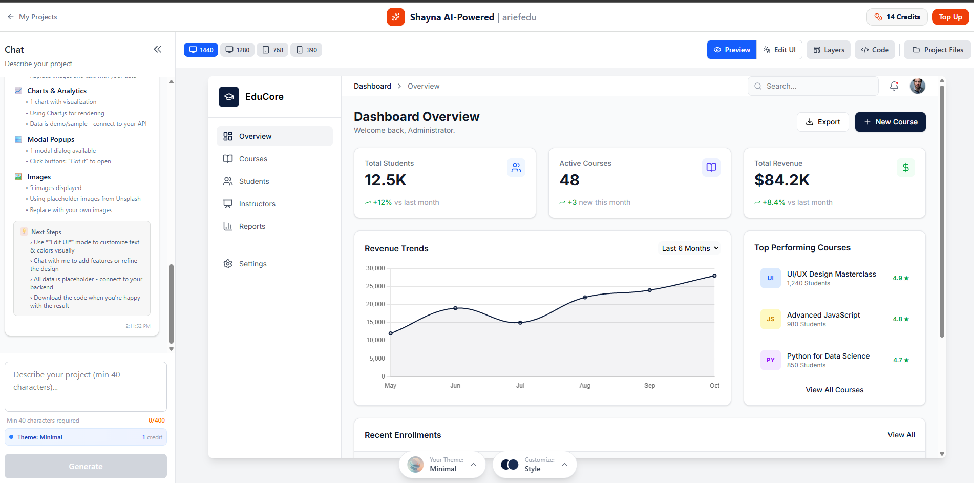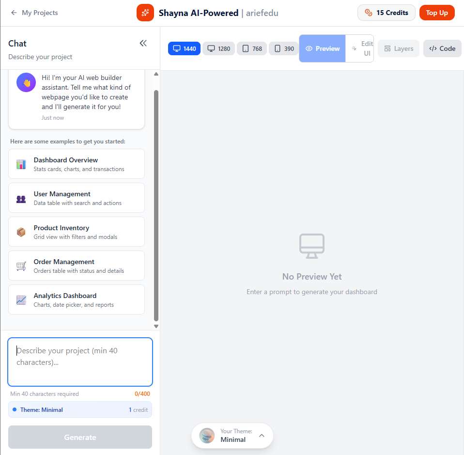 Berbeda dengan AI generator umum yang mencoba melakukan segalanya, Shaynaaa laser-focused pada pembuatan dashboard dan admin panel. Ini berarti output-nya sudah dioptimalkan untuk kasus penggunaan bisnis seperti CRM, LMS, atau e-commerce backend.