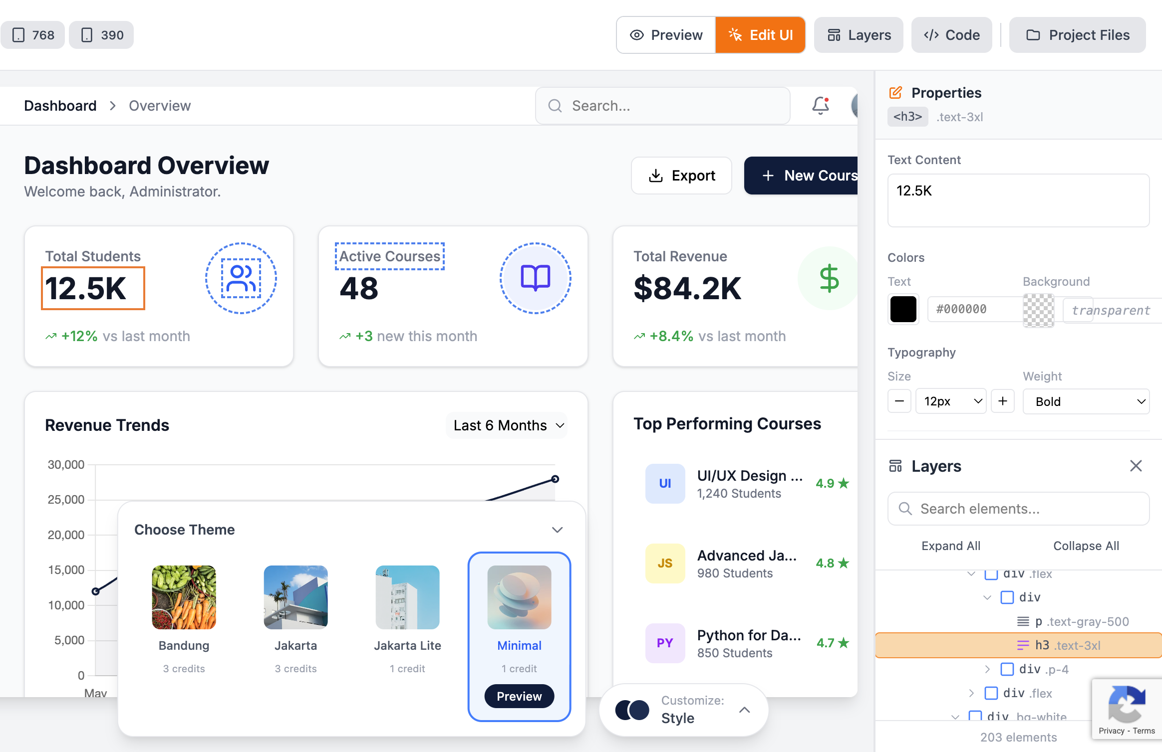 Kalian juga dapat menggunakan fitur “Edit UI” untuk mengubah ukuran font atau warna dari suatu icon maupun komponen. Caranya cukup klik tombol “Edit UI” dan arahkan cursor mouse ke komponen yang ingin diedit.