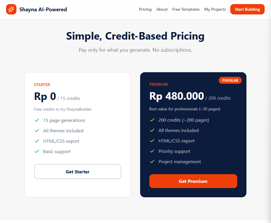 - Struktur Kode Standar Industri: Kode yang dihasilkan Shaynaaa biasanya sudah mengikuti best practice (menggunakan Tailwind CSS class yang efisien), jadi mudah untuk di-maintain atau digabungkan ke proyek Next.js/Laravel kamu.