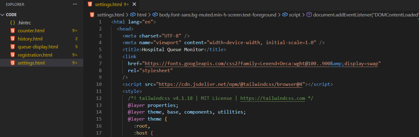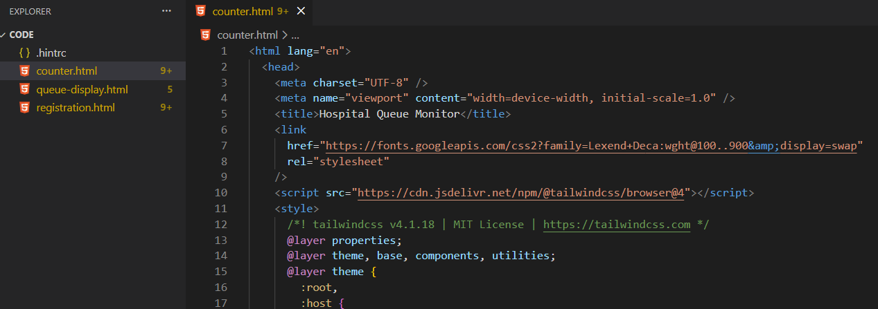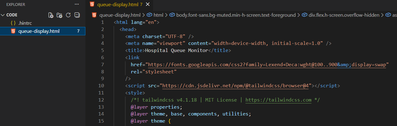 queue-display.htmldengan klik tombol "code”, lalu klik “copy code”