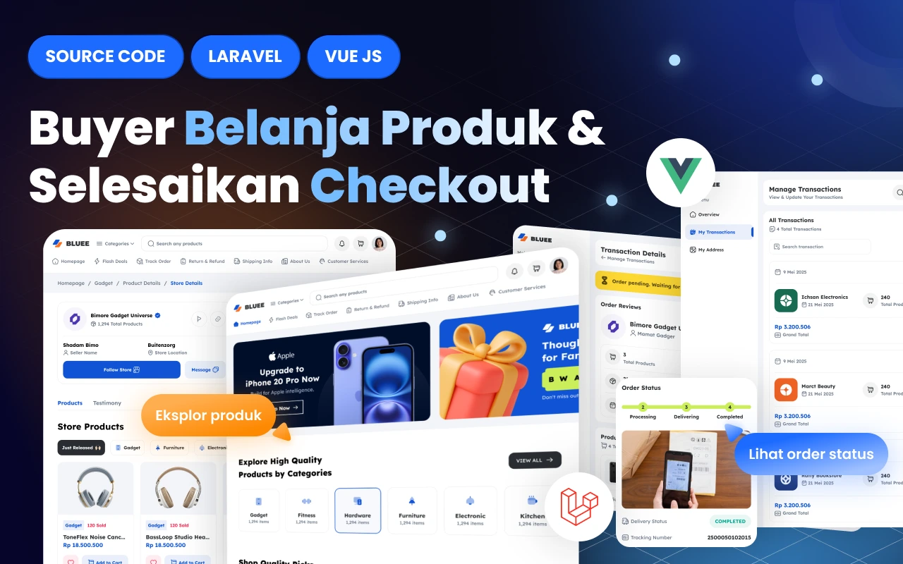 Source Code Laravel 12 Vue 3: Web Marketplace Seperti Blibli