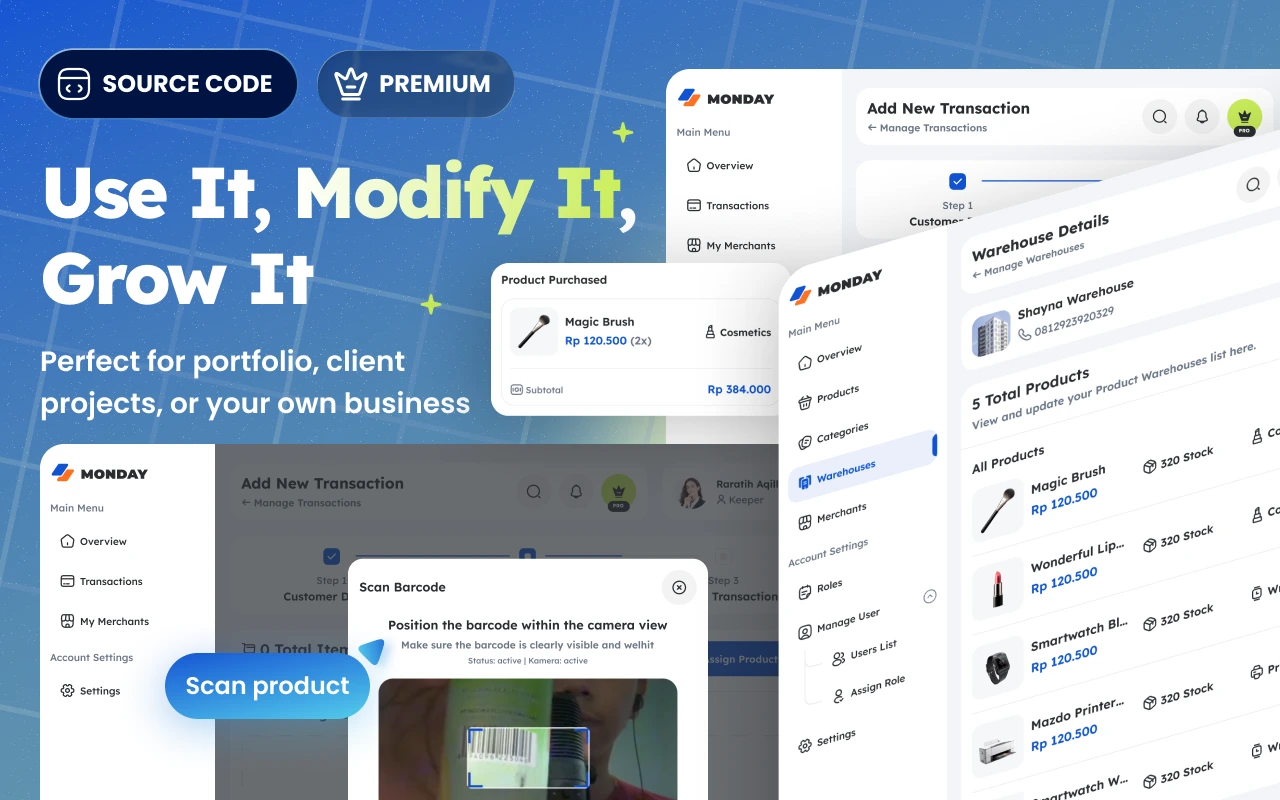 - Freelancer atau pengembang yang ingin punya referensi proyek warehouse lengkap.