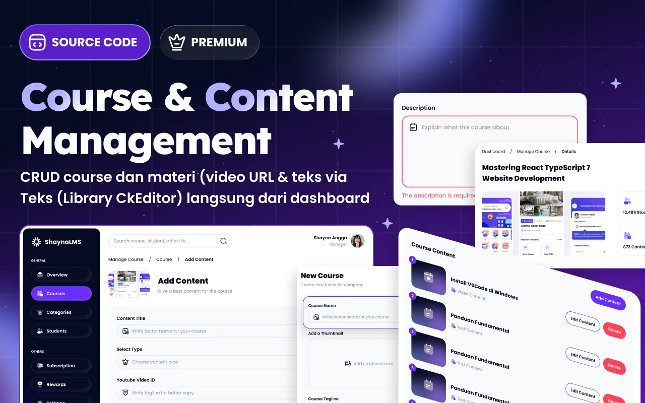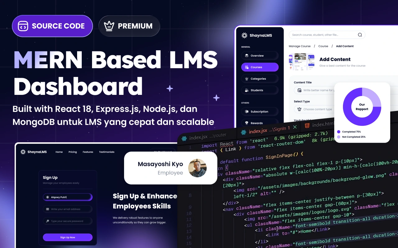 Source code Dashboard System LMS berbasis MERN (MongoDB, Express, React, Node.js) ini dirancang untuk kamu yang ingin membangun platform pembelajaran modern secara cepat dan scalable. Sistem sudah dilengkapi alur bisnis nyata, mulai dari registrasi mentor/company hingga pembayaran otomatis menggunakan Midtrans, sehingga cocok untuk kebutuhan kursus online, corporate training, maupun internal learning system tanpa harus membangun dari nol.