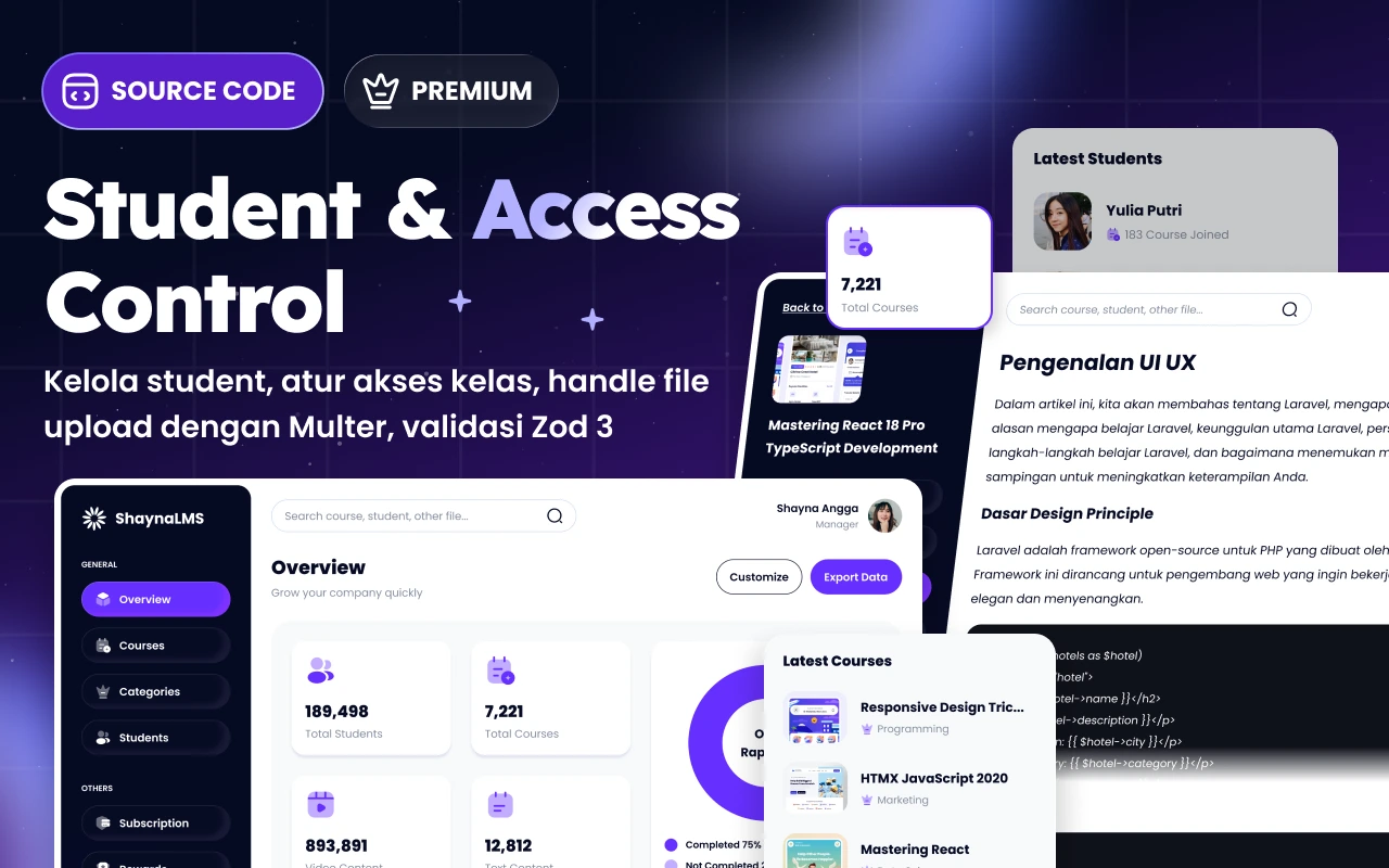 Selain itu, sistem ini juga mendukung manajemen akun student secara penuh. Mentor/company dapat membuat akun student dan mengatur akses ke kelas-kelas tertentu. Student kemudian dapat login menggunakan akun yang telah dibuat dan langsung mengakses materi sesuai hak aksesnya. Dengan struktur yang jelas dan siap dikembangkan, source code ini sangat cocok dijadikan fondasi LMS profesional berbasis MERN.